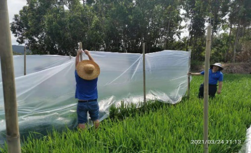 生產(chǎn)部同事正在給單株提純的泰豐A親本用塑料膜做好隔離。